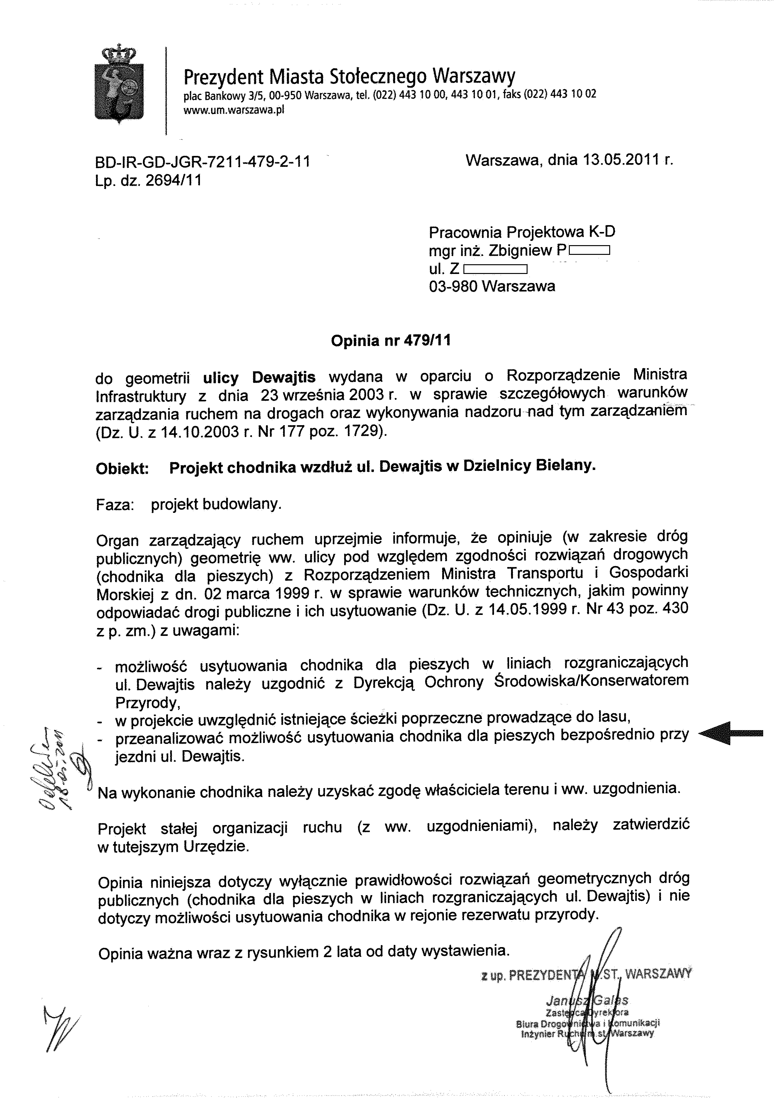 2. kopia opinii nr 479/11 Inżyniera Ruchu m.st. Warszawy PNG, 140 kB
